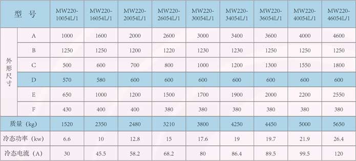 常溫型(額定電壓D C - 2 2 0 V,通電持續(xù)率60%)主要技術(shù)參數(shù)
